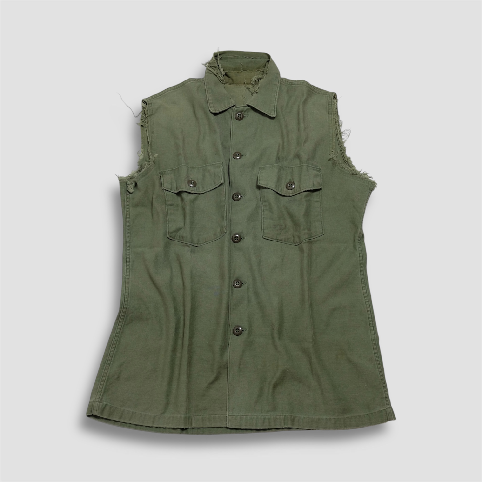 vintage archive used clothing military remake shirts no-sleeve khaki olive (smop000746)